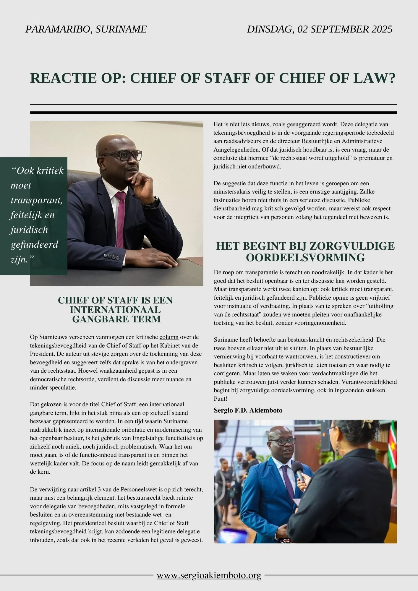 Reactie op: Chief of Staff of Chief of Law? Sep 2 Written By Kamer2 DH597 02 september 2025 Kamer2 DH597